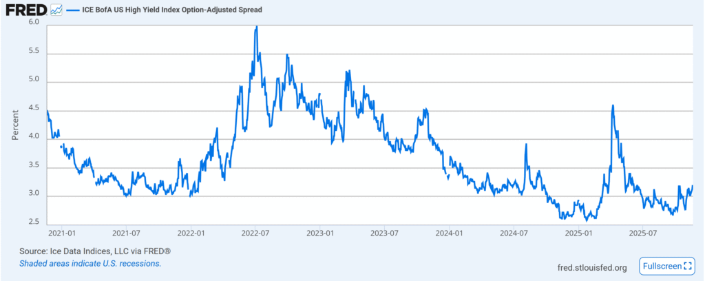 這是我最看重的指標。股市可以因為情緒而崩跌,但債市通常比較誠實。觀察「高收益債與公債的利差」。