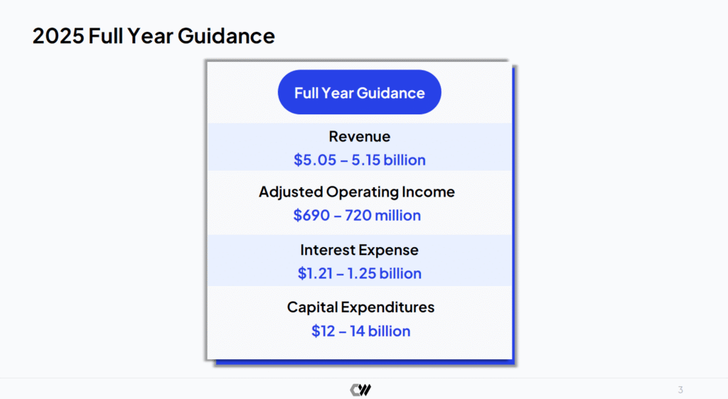 - 公司下修全年營收與 Capex 指引,承認部分資料中心 shell 交付延遲,2025 年 Capex 由原本 20–23B 調降到 12–14B。