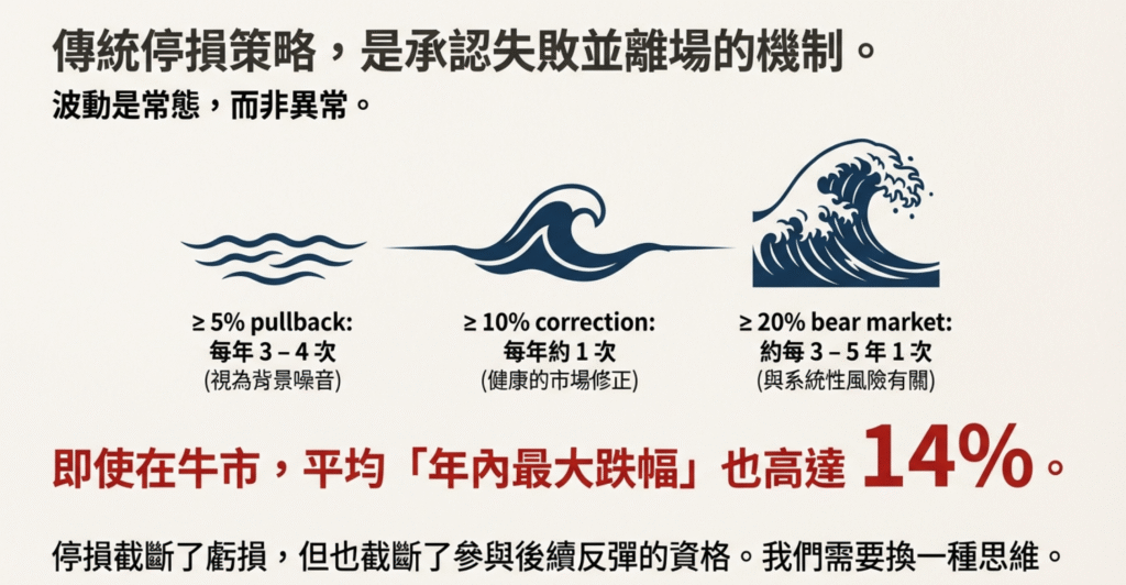對於熱愛科技股、追逐 AI 浪潮(如 NVIDIA, Palantir, Tesla)的投資者來說,這種劇本太熟悉了:你看好一家公司的長線價值,但股價的高波動性(High Beta)讓你每天心驚膽跳。當大盤回調 5% 時,你的持股可能暴跌 15%。按照交易教科書寫的,為了保護本金,你忍痛執行了「停損」(Stop Loss)。然而,往往就在你賣出的幾天後,市場V型反轉,股價再創新高。你只能眼睜睜看著它絕塵而去,手中的現金卻成了最大的遺憾。
